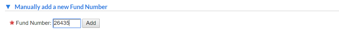 To add a new Fund Number, type the new number in the correct format, and click Add.