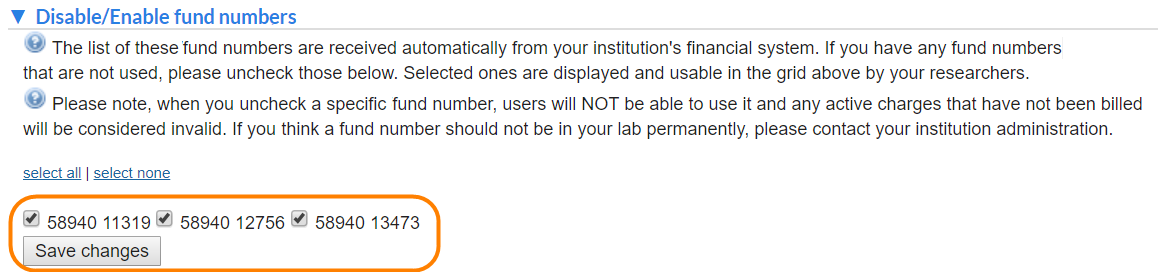 - Manage Fund Numbers: Hide or remove funds from your lab.