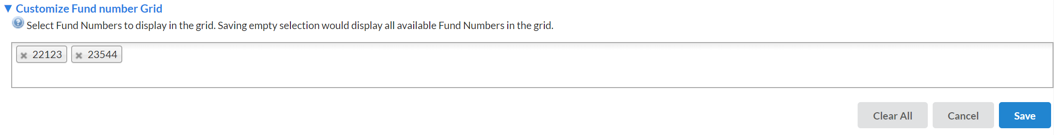 Groups with many different Funds may find it helpful to set up a specific selection of funds to display on the Fund Grid. To accomplish this, expand the Customize Fund number Grid by clicking on the title: