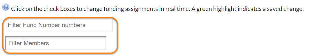 To quickly view a specific fund or group member, you can use Filter Fund Number and Filter Members boxes. Type (part of) a fund number or member name in the corresponding box, and the Fund Grid will only show matching entries.