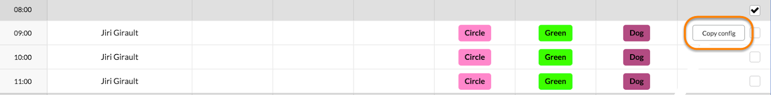 Go to the reservation to which you would like to match the day’s attributes. Press the "Copy config" button on the right.