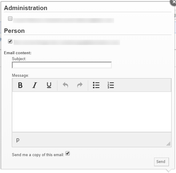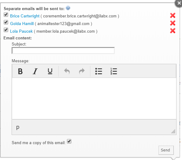 selected users. Complete the Subject and Message, and then