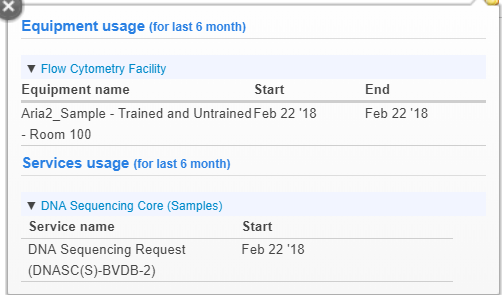 - Equipment training (microscope icon): Core administrators only. Manage the Training Status for this person.
