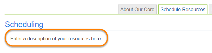 - Scheduling tab description: Entering a description to display for the Scheduling section. In the example below, your description will display in the highlighted area.