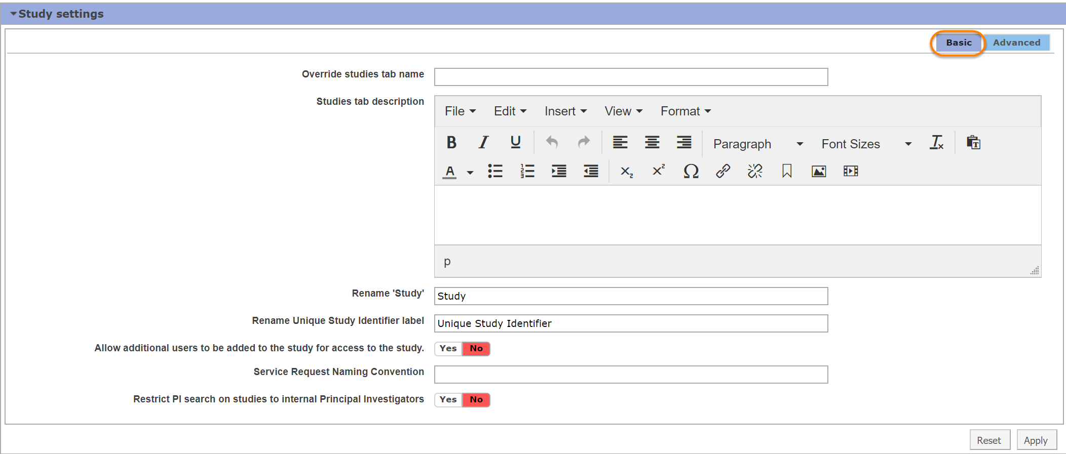 Study Settings