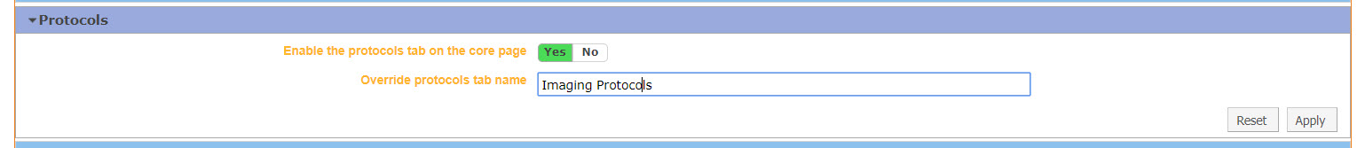 - Enable the protocols tab on the core page: Define this field as YES if you would like to add the Protocols tab to the core home page.