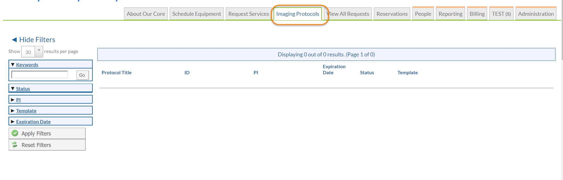 As a core administrator, you may decide whether you would like to display the Protocols sub-tab in Administration .