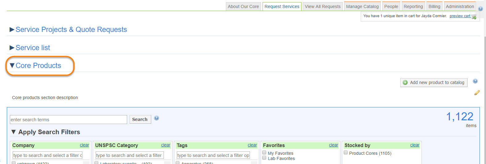A product core is a core that sells items they have created internally OR procured from outside vendors. Use the "Product Core" section to define all the behavior for your product core. The settings are separated into two groups, Basic and Advanced. Please contact iLab support to access the 'Advanced' setting options.