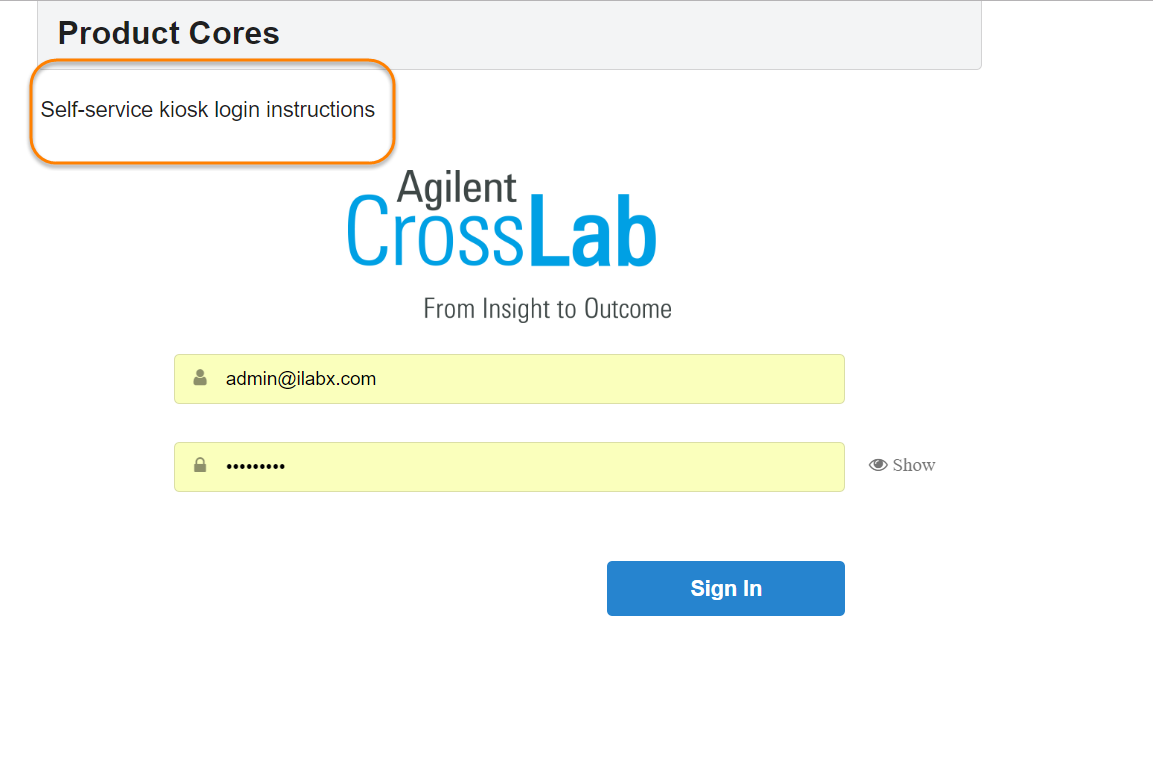 - Self-service kiosk log-in instructions: Enter the instructions you would like to include when a user logs into the self-service kiosk. The screenshot below is an example of the login screen.