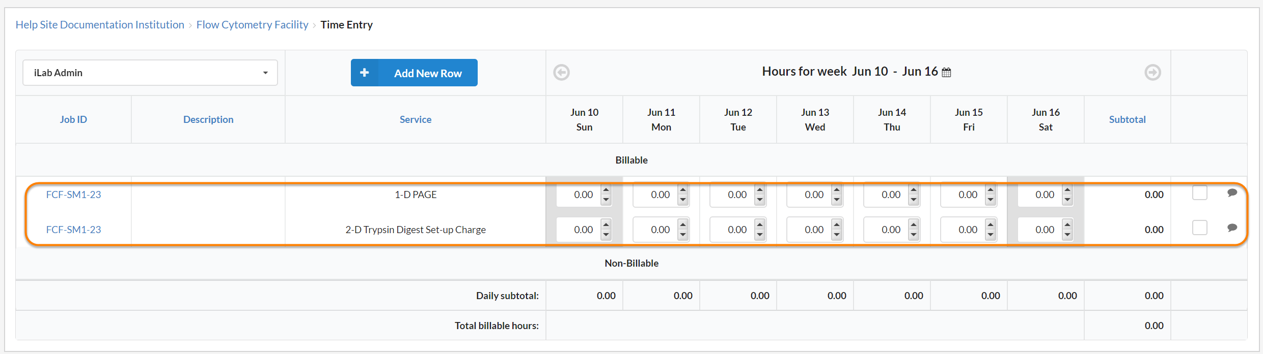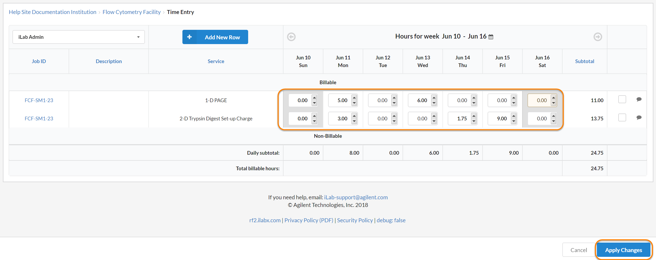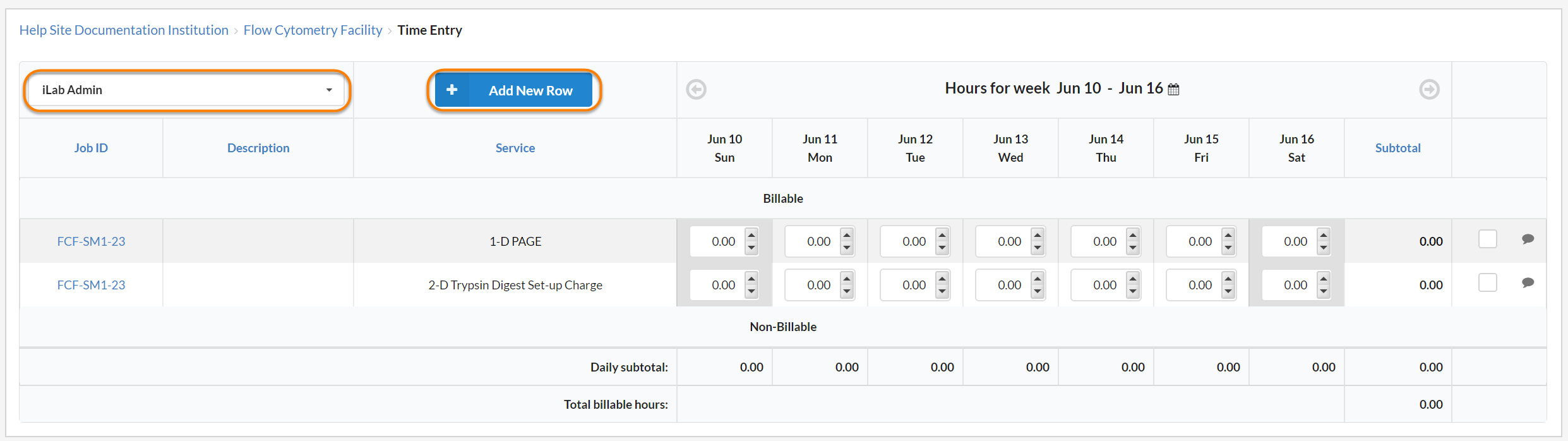 NOTE: Time Entry must be enabled by iLab.