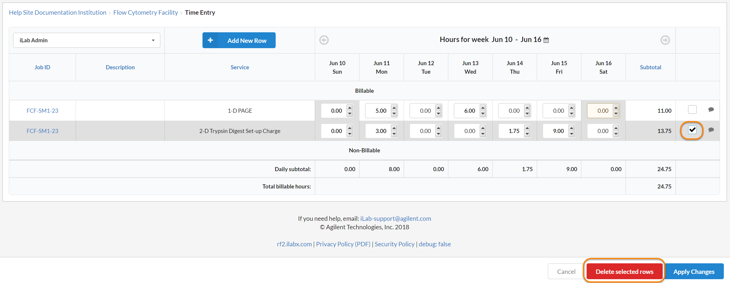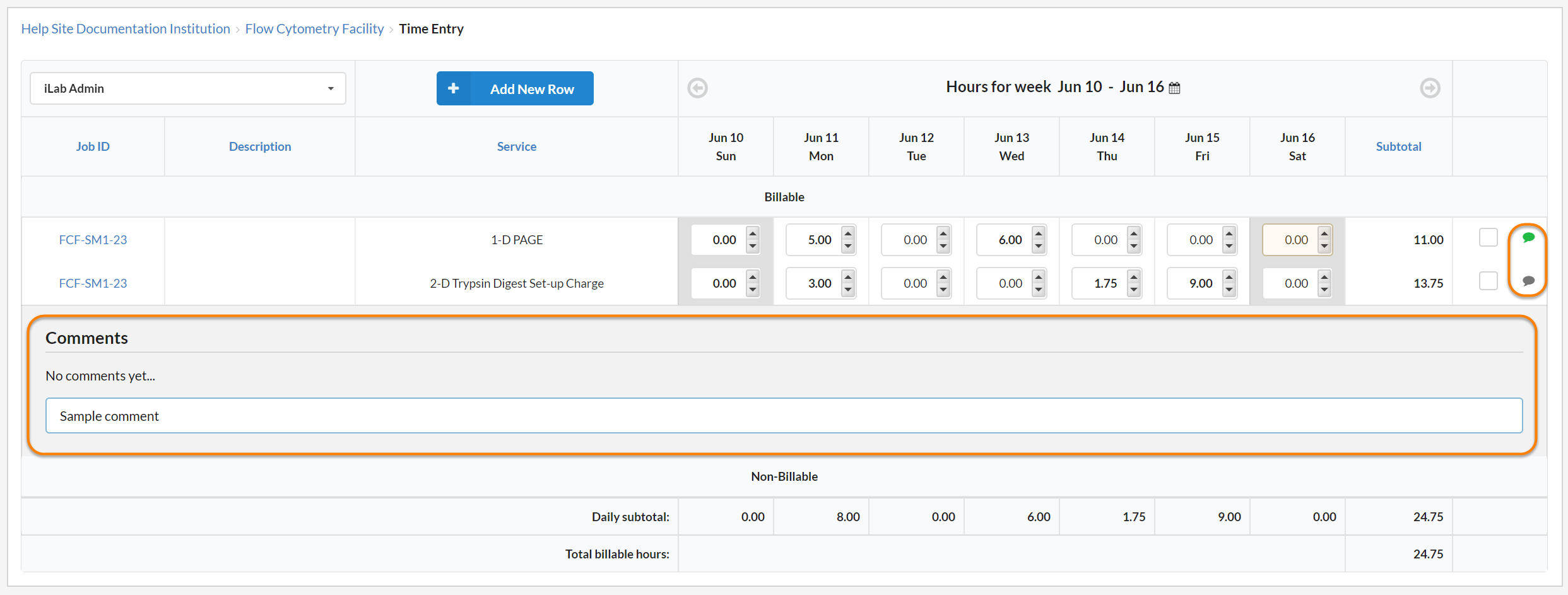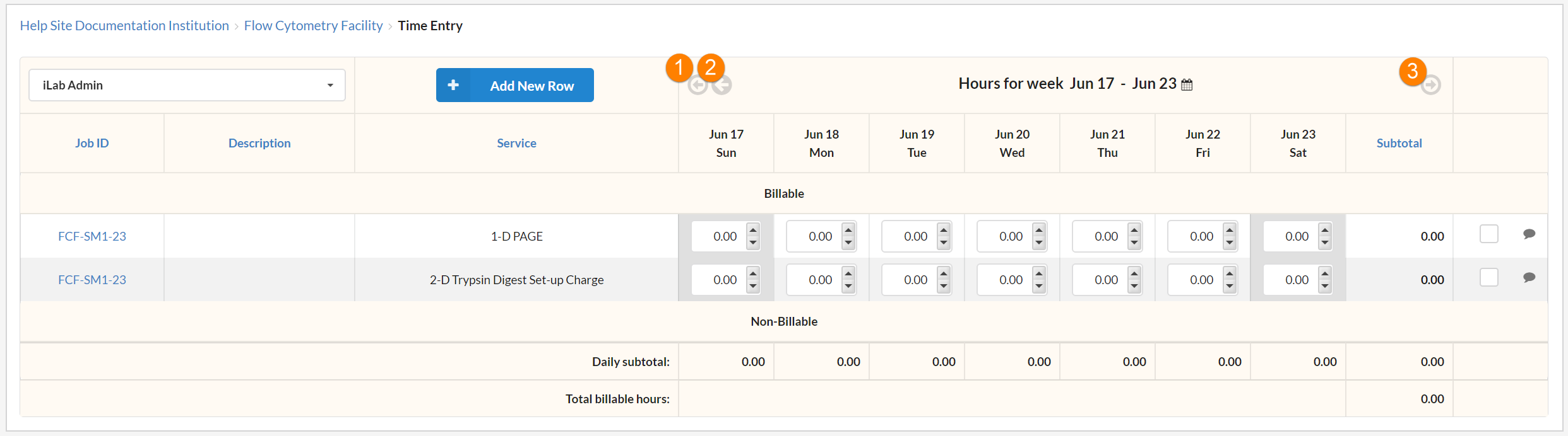 NOTE: Time Entry must be enabled by iLab.