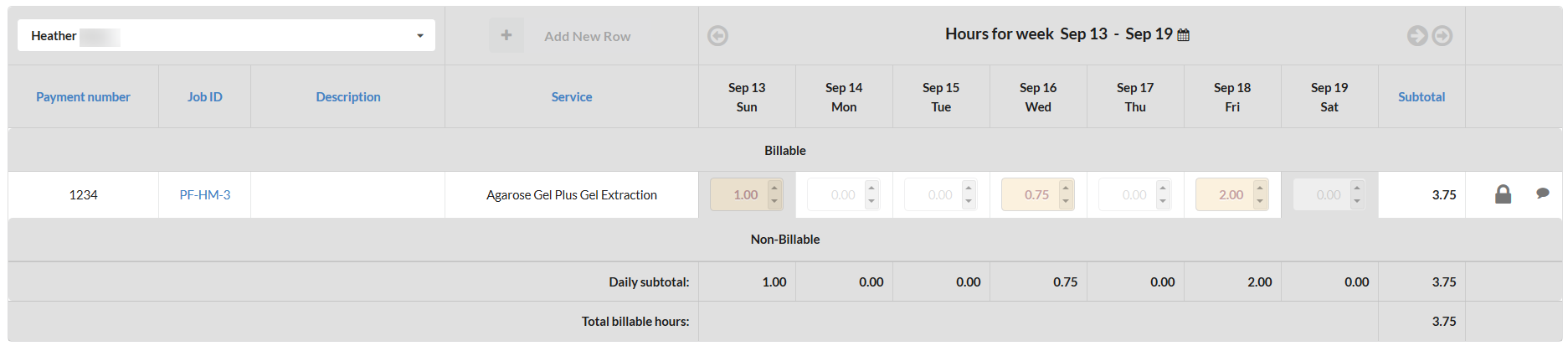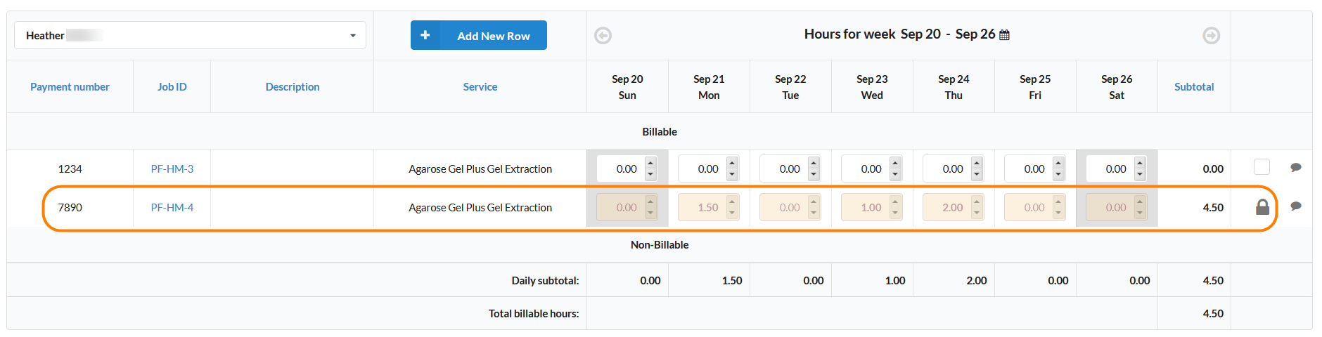 If you need to delete a row, click on the checkbox at the right on the desired row and then click "Delete selected jobs". Note that rows on a closed week cannot be deleted.