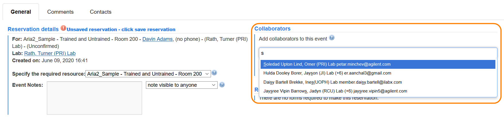 The Collaborators section will be displayed in the top right section of the reservation details.