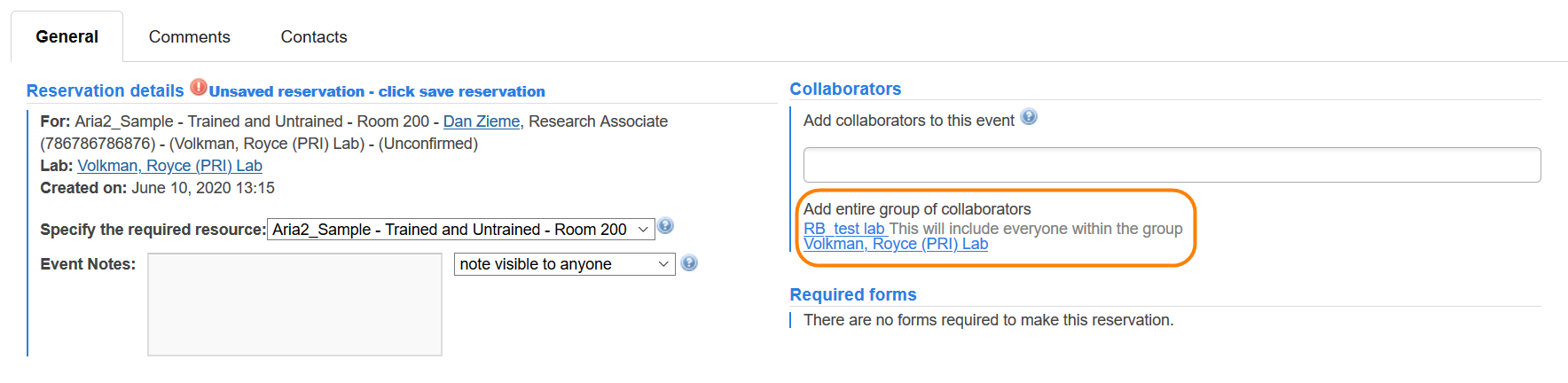 You have the ability to allow users to add an entire lab/group as collaborators in addition to adding individual users. When initiating a request or reservation there will be an option under the collaborators section to Add an entire group of collaborators. This will include everyone in the group/lab as a collaborator.