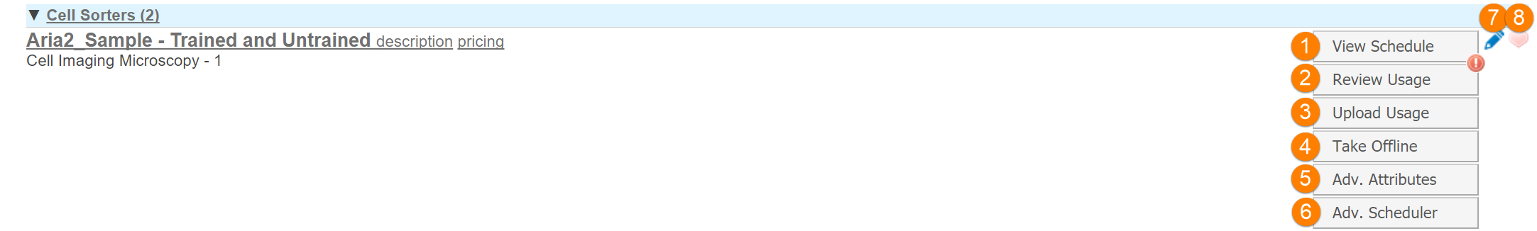 - Favorite: Click on the "heart" icon to mark this equipment as a favorite for easy reference. For more information, see Managing Favorites.