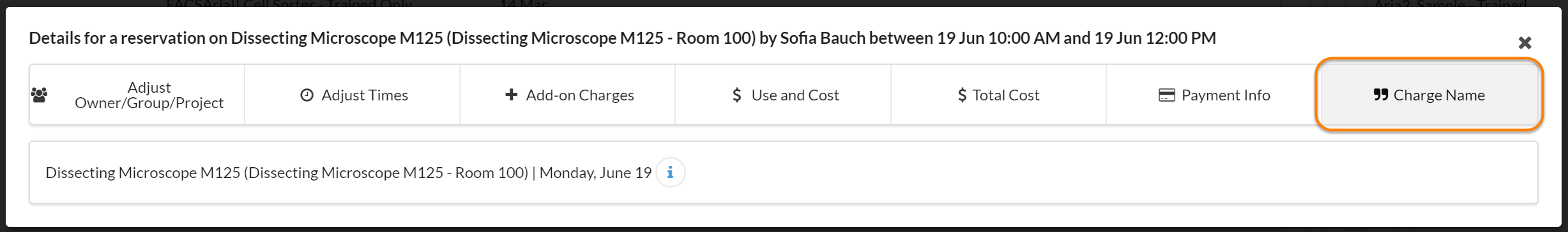 - Charge Name will display the name for the charge also displayed on invoices and billing files. The charge name is set at the core level and can be edited by core staff or the iLab support team.