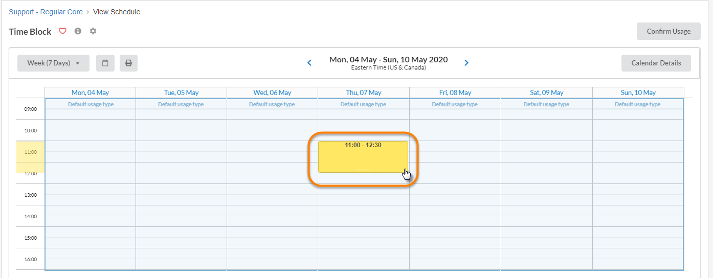 To create a time block, open the calendar page of the resource and click to drag the time period on the day of the intended unavailability. You can then adjust the exact date and time when choosing the event settings: