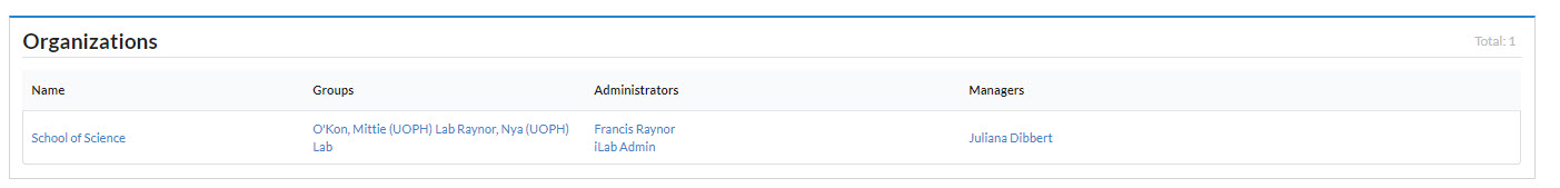 Organizations are typically created by your iLab Project Manager during the integration process. When the organization is created by iLab, the proper organization managers will be added. Institution administrators will be able to see all research groups, departments, and core facilities.