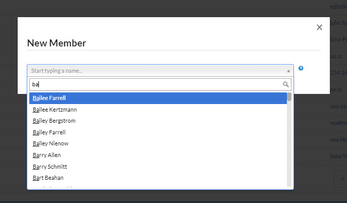 The New Member window displays. Begin typing the name of the member you wish to add and select from the drop-down menu that displays. Note: You can only add new members if they have an existing iLab account.