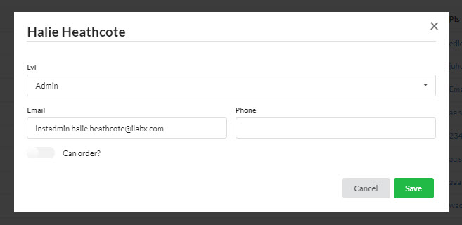 From here, you may edit the member's role, email address, phone number, and ordering privileges.