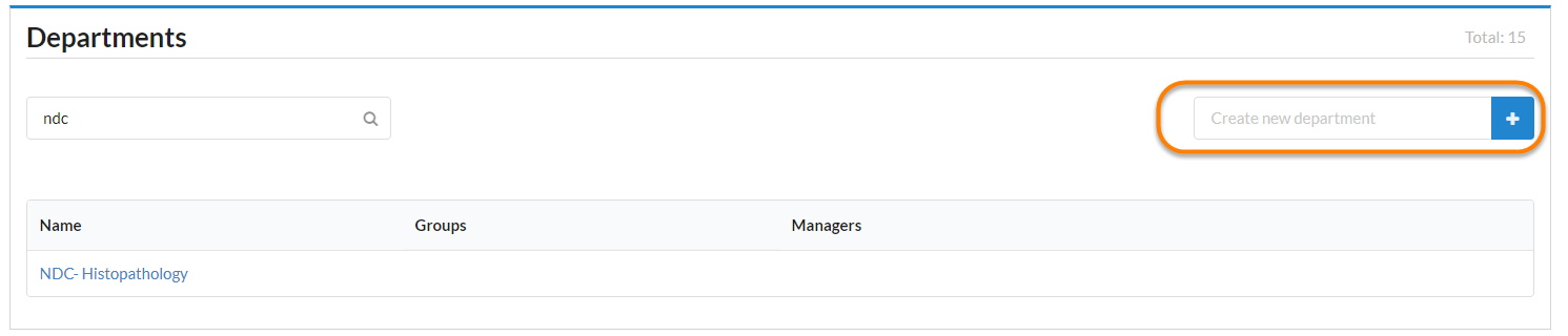 To add a new department, enter a name in the Create new department box and click the blue add sign.