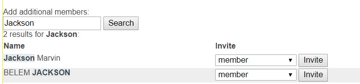To add an additional member to your core, type their name into the search box. When the correct person displays, select the role you wish to assign to them, and click the "Invite" button. Helpful Hint: If two people have the same name, you can hover over the name to see the email associated with each individual.