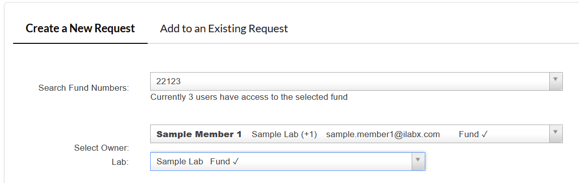 To Quick Add a charge to a new service request, select the Create a New Request tab and complete the fields below: