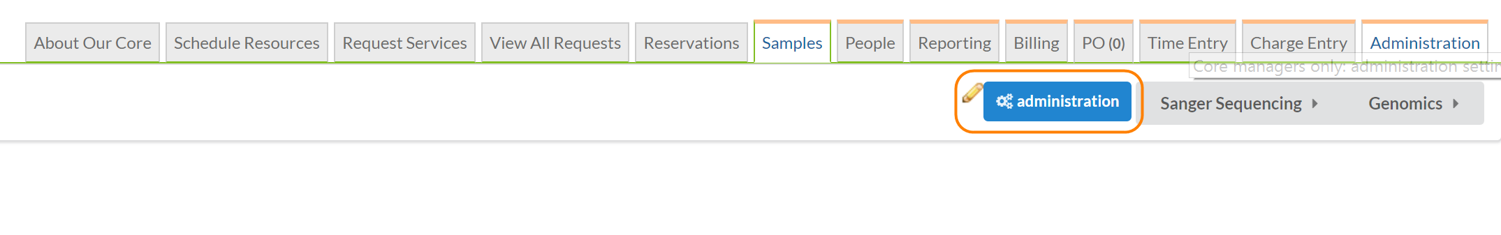 On your Samples tab, click on the "Administration" button to begin creating a new sample request form.