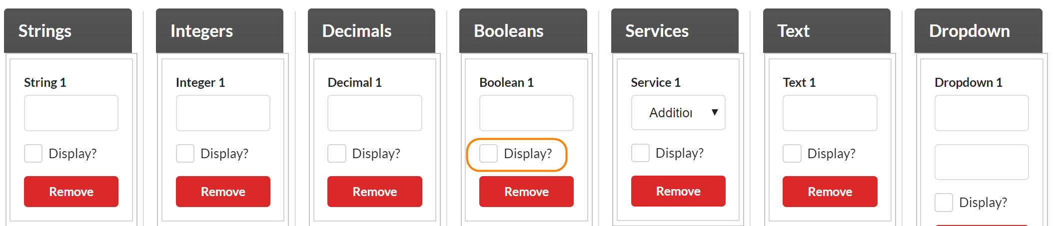 - Boolean: Use a Boolean field for Yes or No type questions. A maximum of 5 Boolean fields may be added to a form.