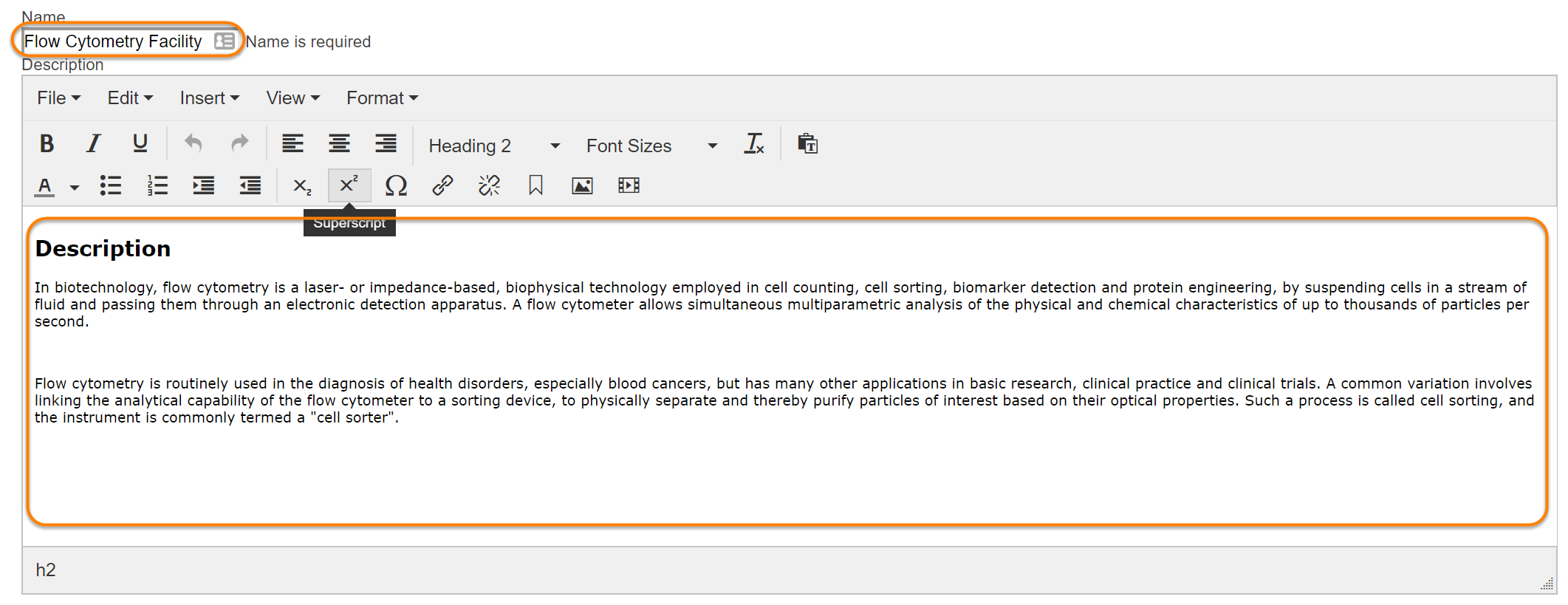 - Viewing changes: Once you have saved your changes, be sure to view changes internally on the 'About our Core' tab and also externally when not logged into iLab.