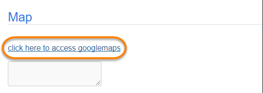 To begin mapping your location, click on 'click here to access googlemaps'.